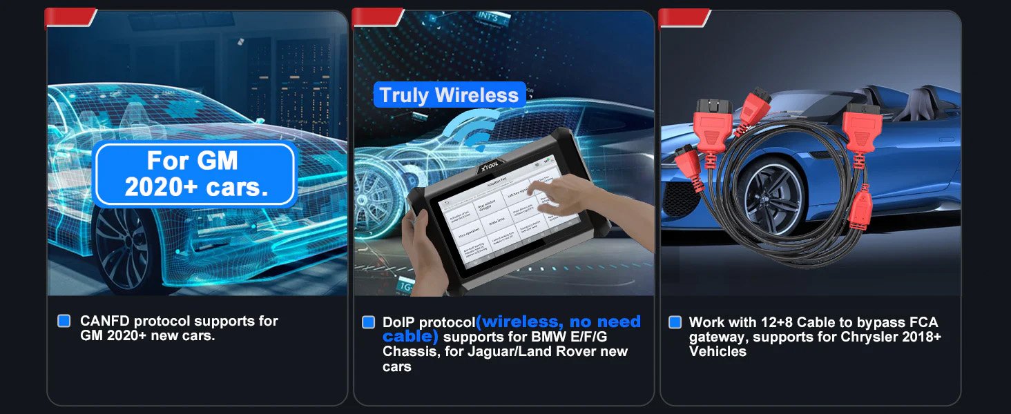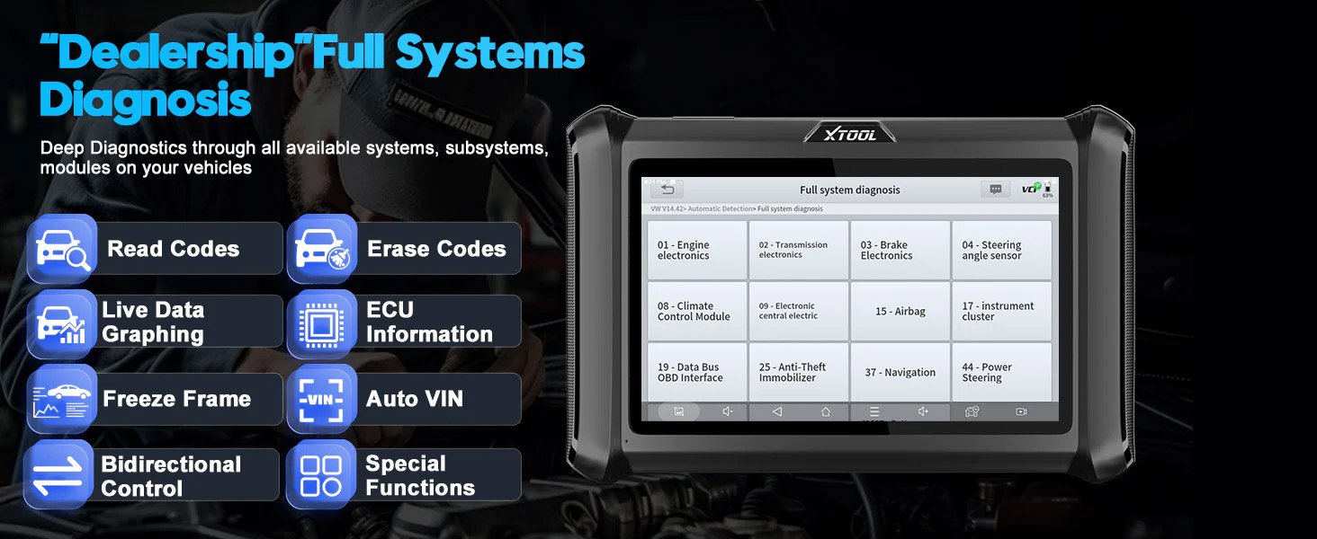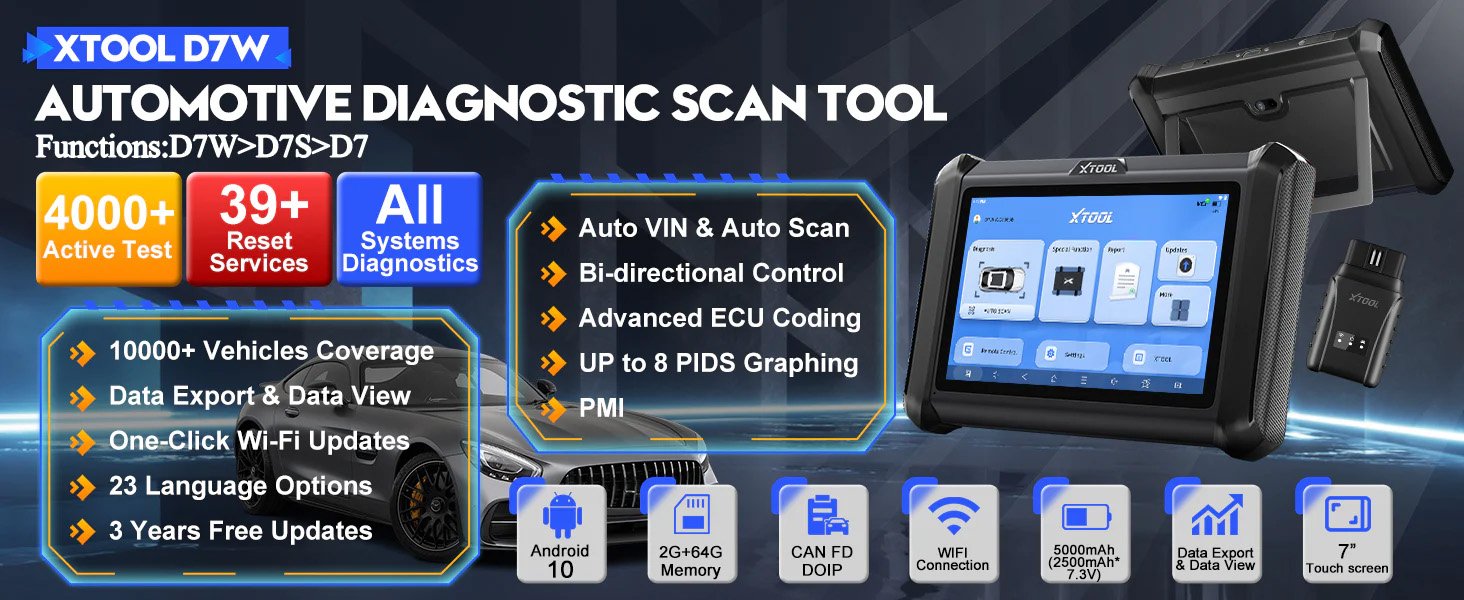 Xtool D7W yra naujausia skenavimo sistema, naudojama prisijungti prie transporto priemonės diagnostikos jungties OBD II, transporto priemonės duomenims perduoti. Tai yra puikus įrankis klientams, ieškantiems greitos ir lengvos visų sistemų diagnostikos. Įrenginys suderinamas beveik su visais Europos, Amerikos, Kinijos, Azijos ir Australijos automobilių modeliais.